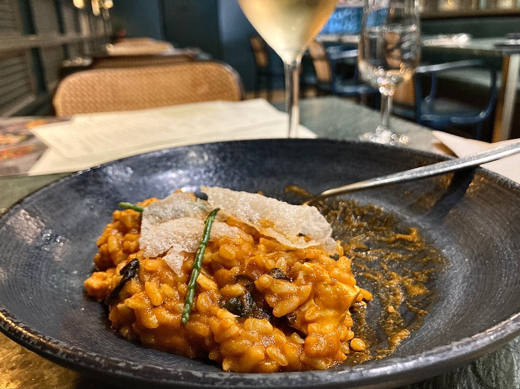 ein restaurant ziemlich zentral, aber doch in einer ruhigen seitenstraße. die speisekarte stellt wieder vor die üblichen probleme – du musst ausschließen.